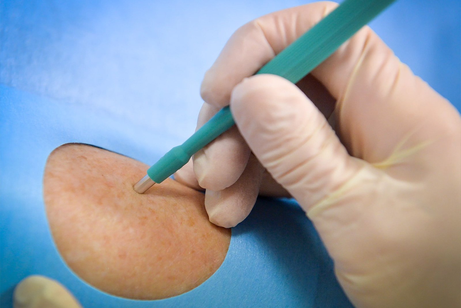 Si une lésion semble anormale, un prélèvement est effectué sous anesthésie locale pour analyse au microscope, confirmant ou infirmant un diagnostic de cancer.